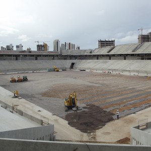 Montagem da cobertura e plantio da grama devem começar até o fim de julho, segundo consórcio